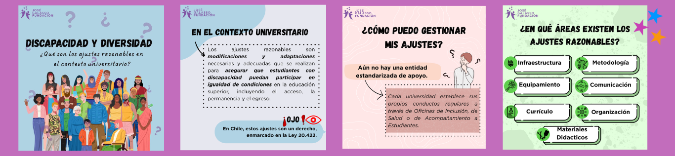 - Comunicación e información: Traducción a lengua de señas, materiales en formatos accesibles, etc.